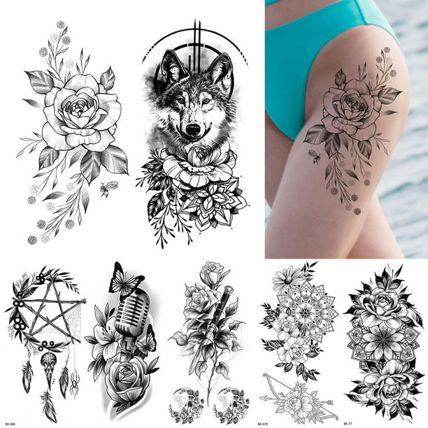 Qisiwole 3d Flowers Temporary Tattoos Stickers For Women Waterproof Fake Tattoos Body Art Arm Sketch Tattoo Stickers For Women And Girls Deals Walmart Com